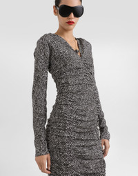This chevron print cady dress is the perfect choice for an elegant evening. The gathering on the hips and center, together with the fins on the skirt, creates a sophisticated drapery that enhances the feminine silhouette. Chevron print cady midi dress: • Multi-colored • Gathers pattern on the sides and center • Side paneled skirt • Zip on the back • Lined • Length 70 cm from the waist on size 40 IT • The model is 175 cm tall and wears size 40 IT • Made in Italy External Composition: 93% Silk, 7% Elastane