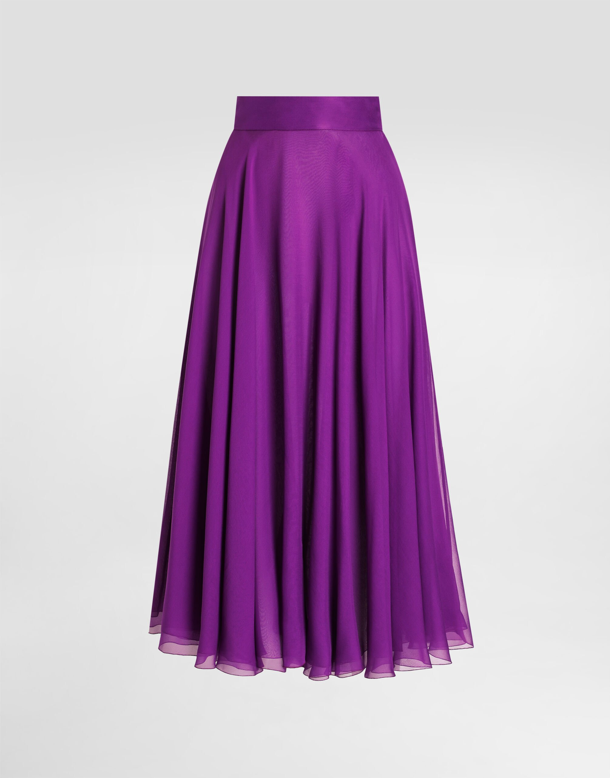 This chiffon circle skirt is an essential piece for those who love sophisticated and timeless fashion. With a sleek design, it's perfect for adding a touch of class to any outfit. Chiffon midi skirt: • Violet • Circle shape • Closure with invisible zip, hook and buttonhole • Doubled • Skirt length 80 cm on size 40 IT • The model is 175 cm tall and wears size 40 IT • Made in Italy External Composition: 100% Silk Internal Composition: 100% Silk