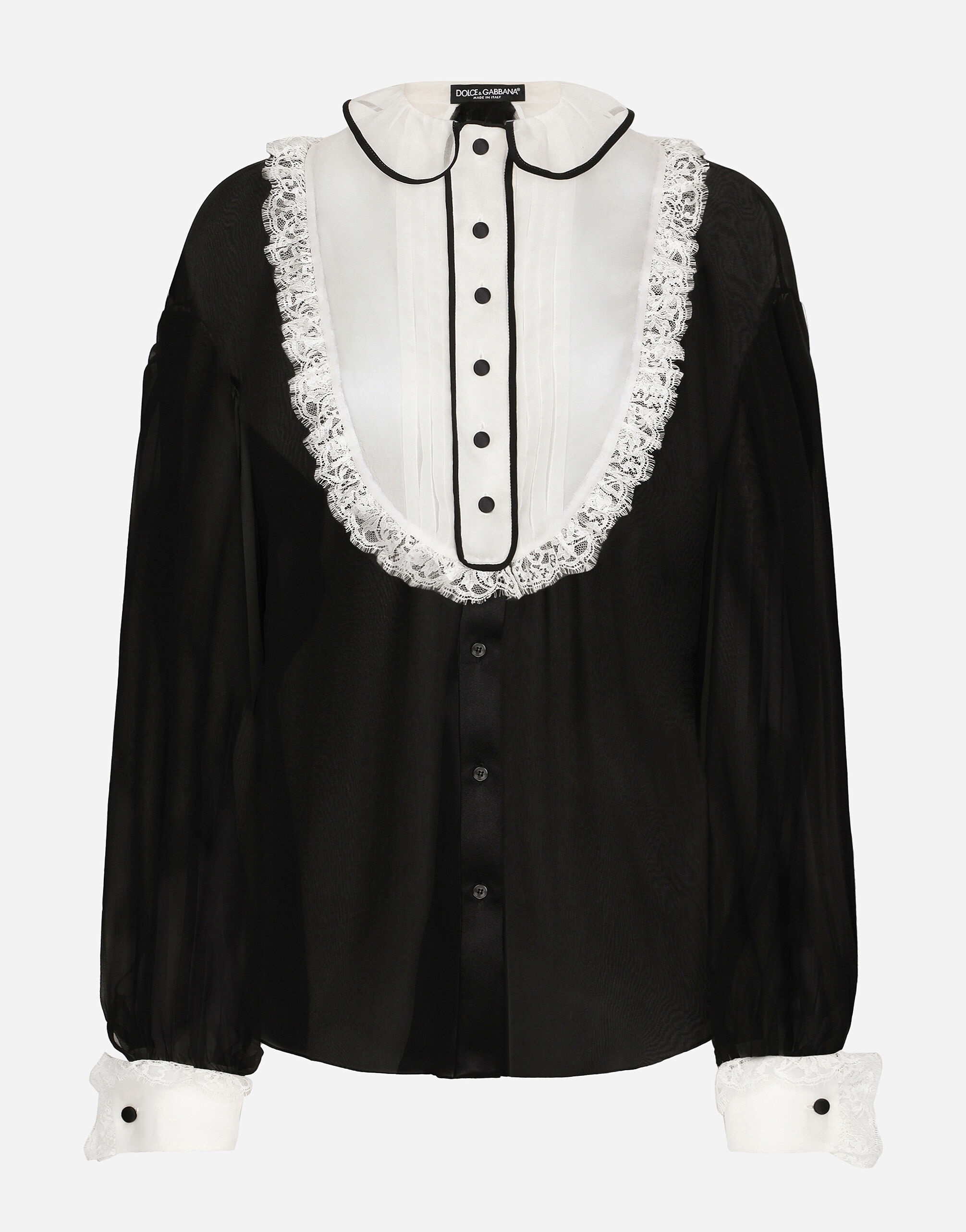 Chiffon shirt with shirt front and organza cuffs