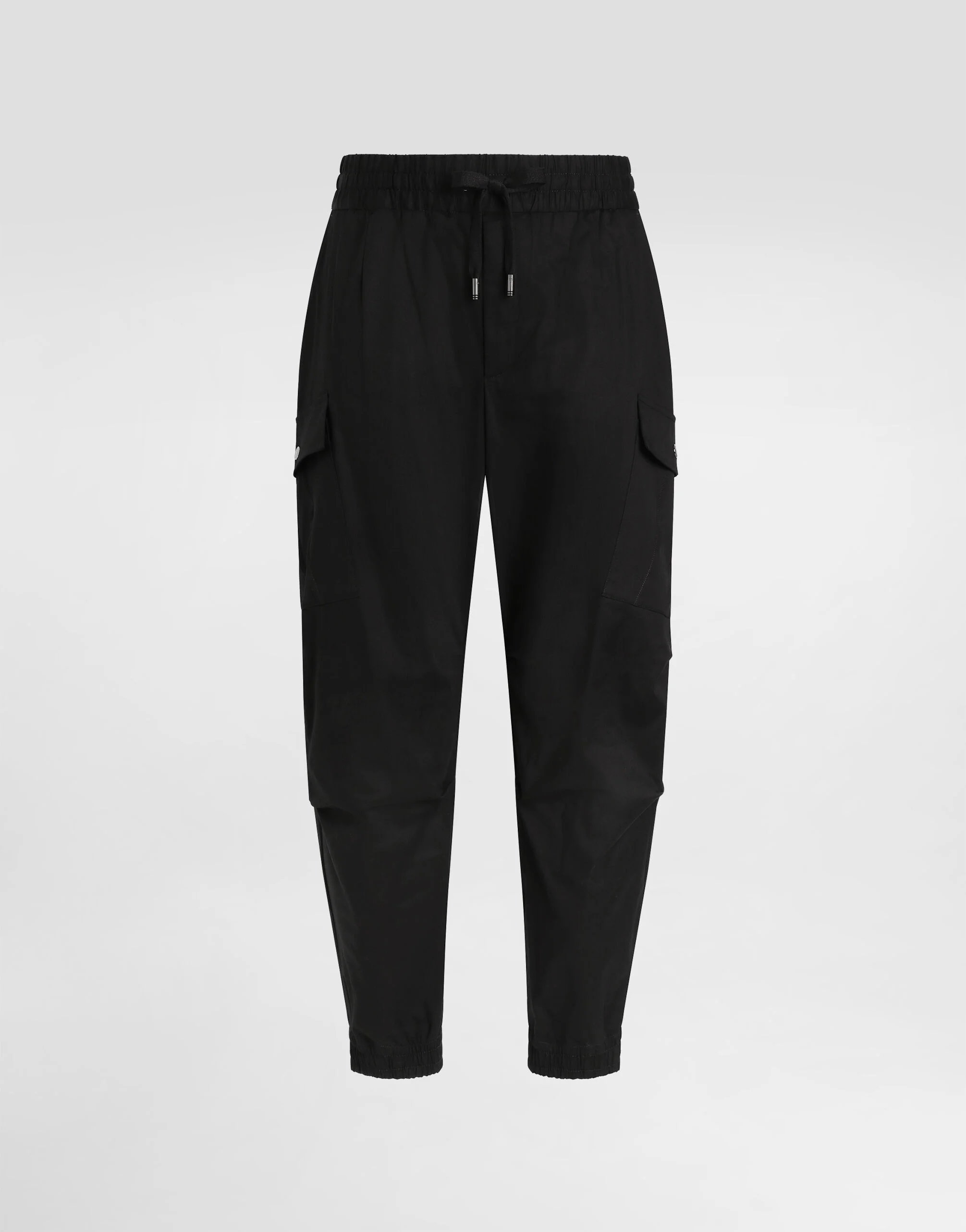 The “Essential” Collection is the modern men's closet designed by Dolce&Gabbana. A range of timeless, iconic pieces developed across all product categories. Stretch cotton cargo jogging pants with a metal tag featuring the Dolce&Gabbana logo: • Regular fit • Stretch waistband with drawstring and branded metal aglets • Front slant pockets and zipped welt pockets on the back • Large side pockets with buttons • Stretch ankle cuffs • The item measures 105 cm on the outer leg on a size IT 48 • The model is 185 cm tall and wears a size IT 48 • Made in Italy External composition: 97% Cotton 3% Spandex