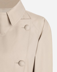 The Spring/Summer 2025 Women’s Collection is celebrating Italian beauty through bold and charismatic femininity. The 50s-inspired lingerie is the star, intermingling with fitted dresses, corsets and oversize trench coats. The iconic jackets have been updated with cropped cuts and modern inserts, while the floral prints add a romantic edge. The eveningwear shines with light fabrics and crystals, accompanied by look-defining accessories, from iconic bags to the cross earrings. Cotton drill trench coat: • Beige • Lapels with rounded tip • Double-breasted • Long raglan sleeves with tab details • Side pockets • Partially lined in silk satin • Button fastenings and belt • The piece measures 130 cm from the center back on a size IT 40 • The model is 175 cm tall and wears a size IT 40 • Made in Italy External composition: 65% Polyester 35% Cotton Internal composition: 100% Silk