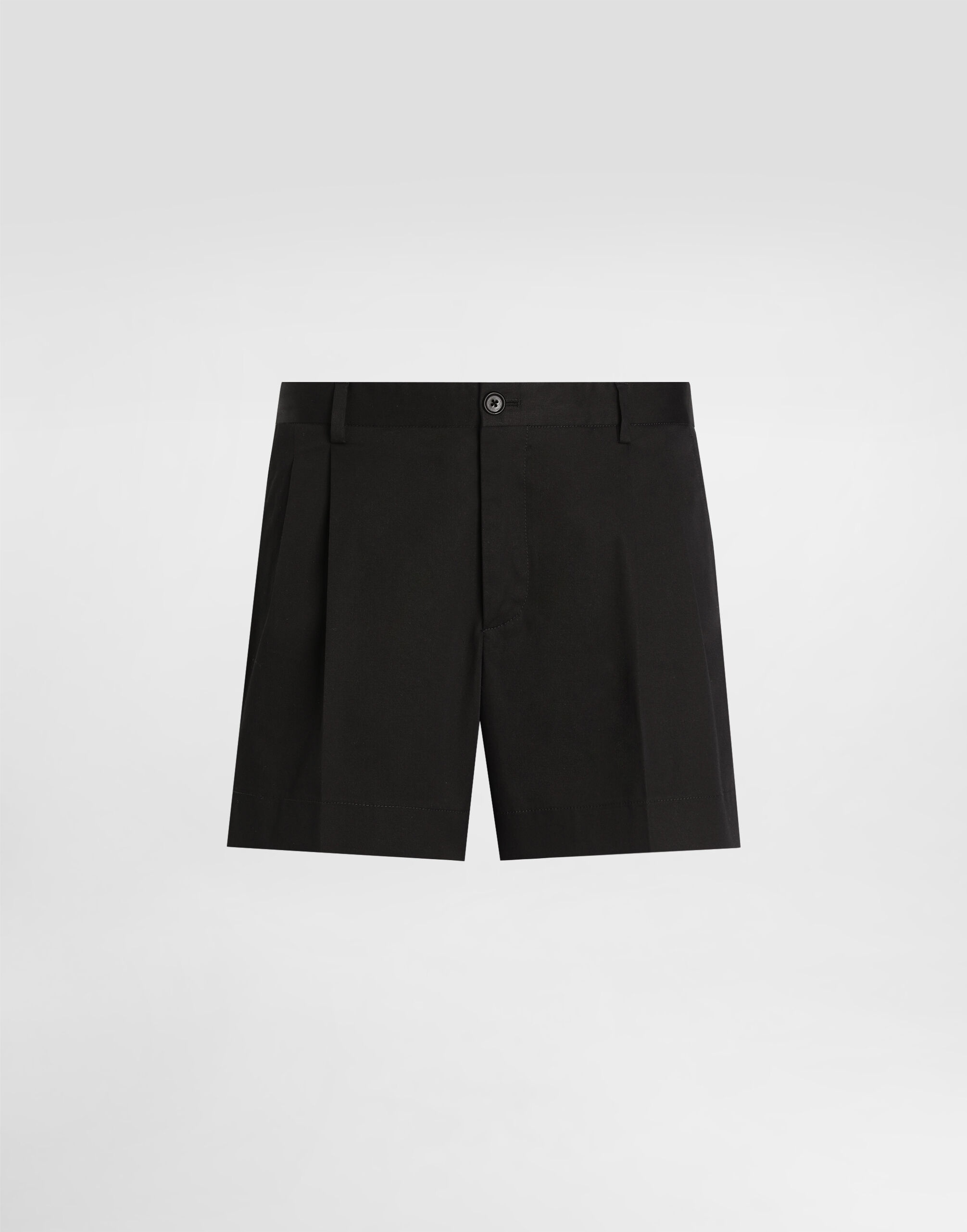 Cotton gabardine shorts: • Black • Regular fit and stretch back • Belt loops on the waist • Fly-covered zipper and button fastening • Front slant pockets and buttoned welt pockets at the back • The item measures 37 cm on the outer leg and the hem is 32 cm wide on a size IT 48 • Made in Italy External composition: 97% Cotton 3% Spandex