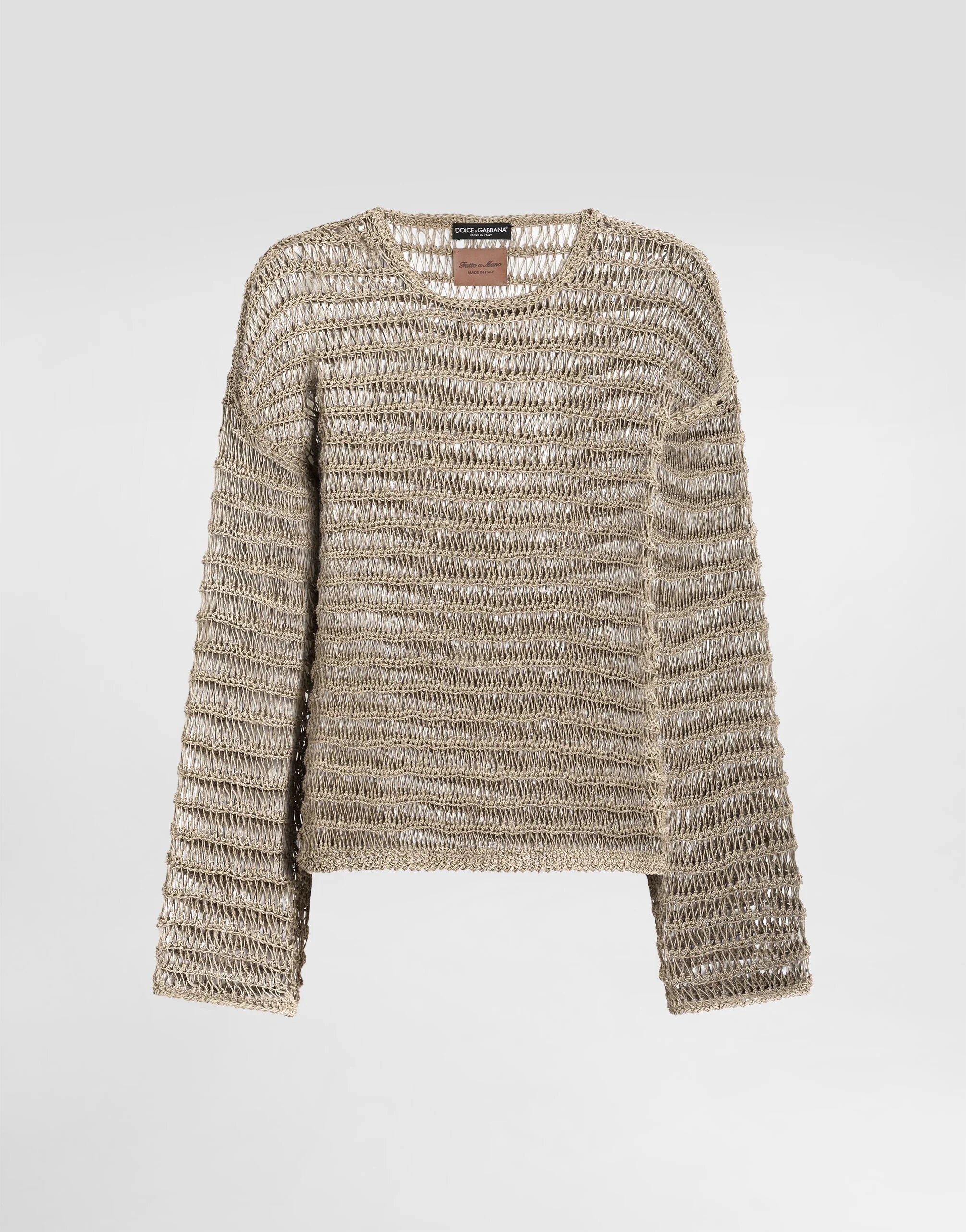 Lightness, Italian aesthetics, and effortless style define the Dolce&Gabbana Men's Spring/Summer 2026 Collection. Pyjamas take center stage, blurring lines between indoor and outdoor spaces with unexpected pairings. Made of striped jacquard cotton, they pair with cardigans, jackets, and sparkling decorations. Relaxed silhouettes, neutral tones with bold contrast details, and iconic accessories complete versatile looks. This crew neck pullover is an essential garment for the modern man, characterized by craftsmanship and a comfortable fit, ideal for any occasion. Cotton-linen pullover: • Beige • Crew neck • Long sleeves • The model is 185 cm tall and wears a size 48 IT • Made in Italy External composition: 73% Linen, 27% Cotton