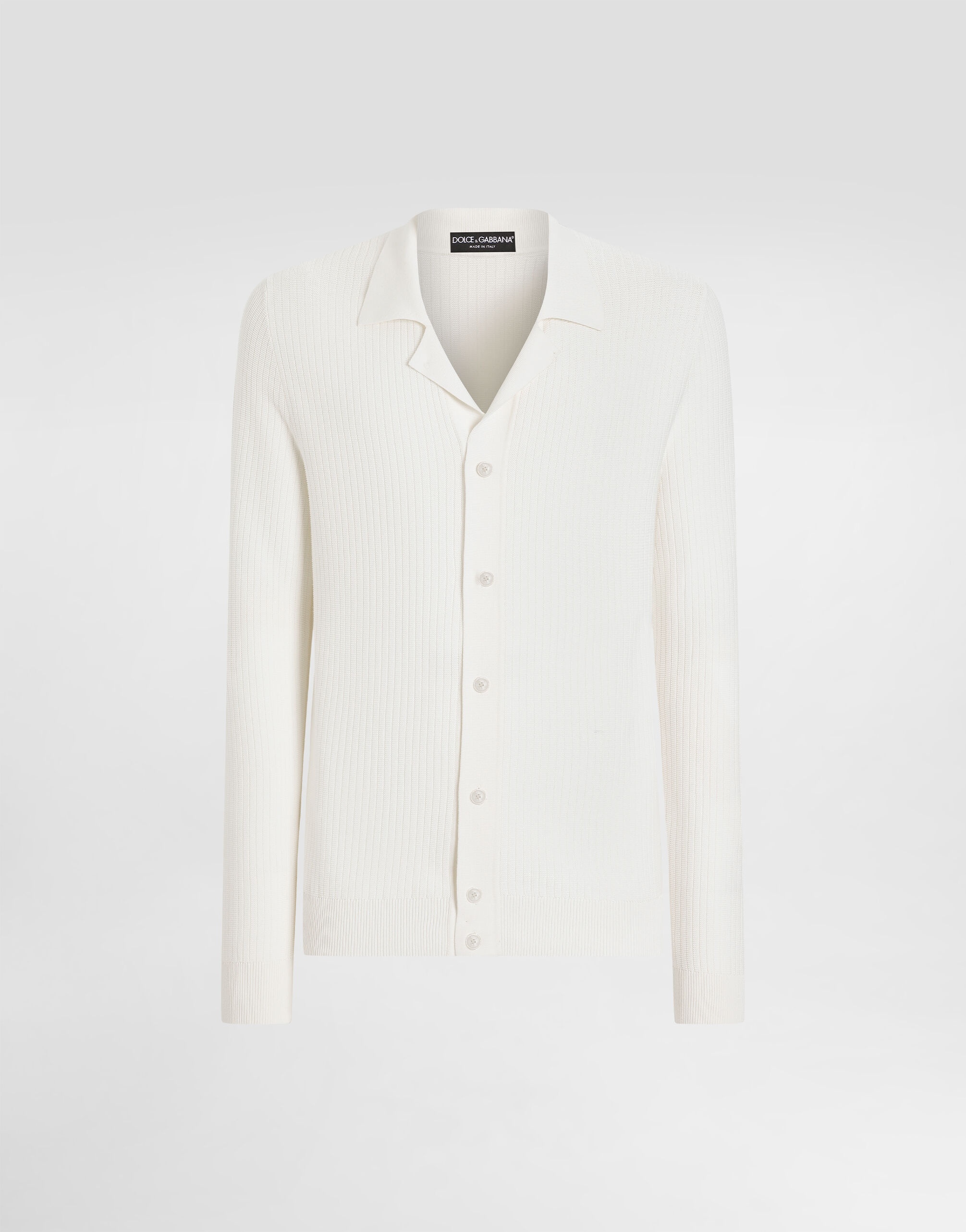 Italy and its beauty are reflected in the Men’s SS25 Collection. Woven raffia and leather give life to jackets, polo-shirts and sweaters to celebrating Italian craftsmanship. The color palette ranges from Nero Sicilia black to burgundy, contributing to conveying a sense of eternal elegance. Refined accessories complement the look: belts and loafers with hand-finished details and oversize bags, such as the Sicily, the Marlene with crocodile-effect print and the versatile Adamo tote. Cotton openwork-knit shirt: • White • Slim fit • Hawaiian collar • Long sleeves • Button fastenings • 14-gauge knit • The piece measures 67 cm from the shoulder seam on a size IT 48 • Made in Italy External composition: 100% Cotton
