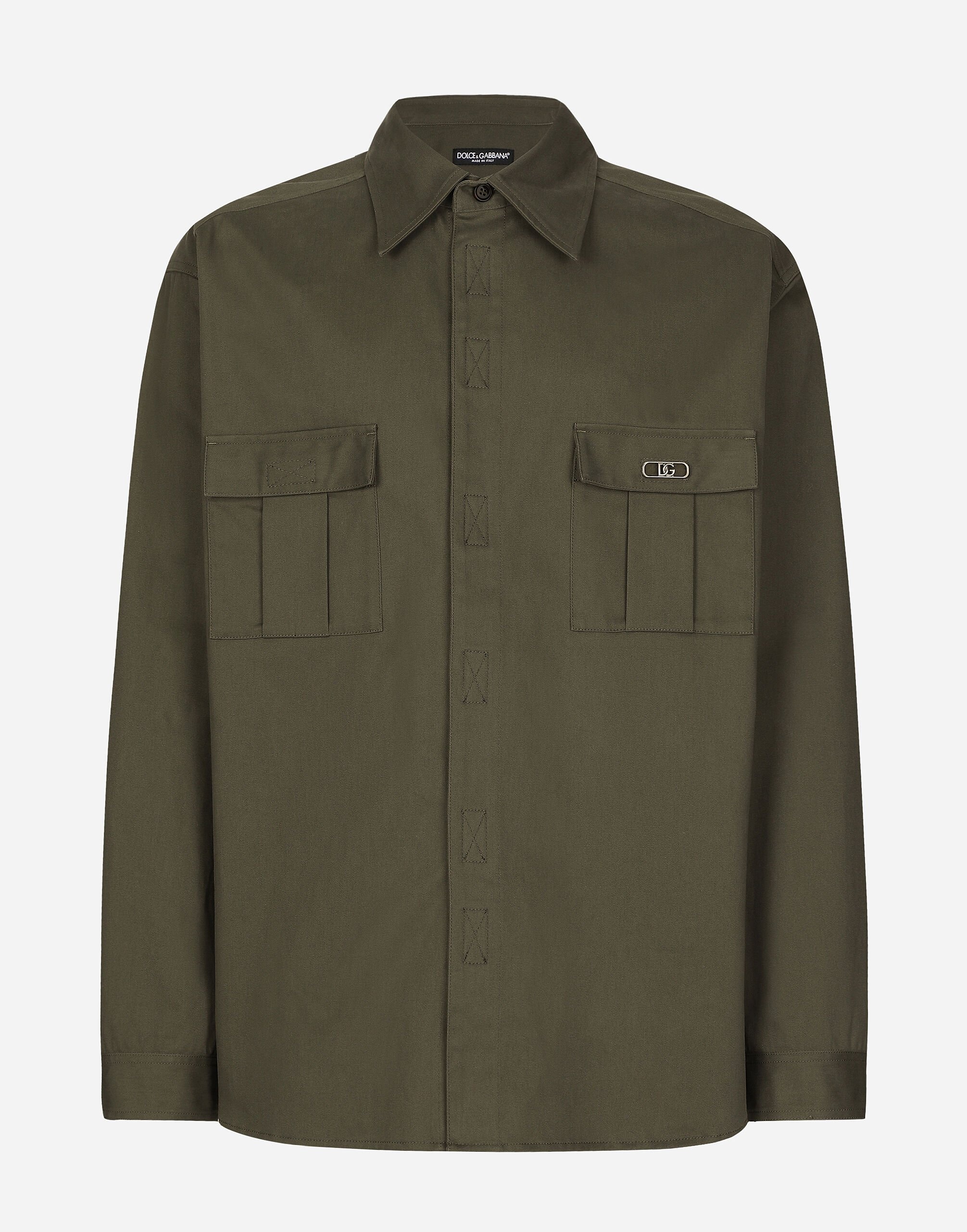 The men's FW 24-25 Re-Edition collection conveys contemporary style that flaunts all the power of the creative DNA that consolidated the brand's image and elevated it to iconic status in the 2000s. Raw-cut details and skilled finishes distinguish pieces with streetwear character: military-inspired jackets and maxi-coats, multi-pocket cargo pants and picot pieces alternate with denim boasting many washes and dyes, thereby redefining an iconic style that is always evolving. Stretch cotton shirt with front pockets: • Green • Oversize fit • Kent collar • Long sleeves • Hook-and-loop fastener • Side slits • Rear yoke • The piece measures 78 cm from the rear collar seam on a size IT 40 • Made in Italy External composition: 98% Cotton 2% Spandex