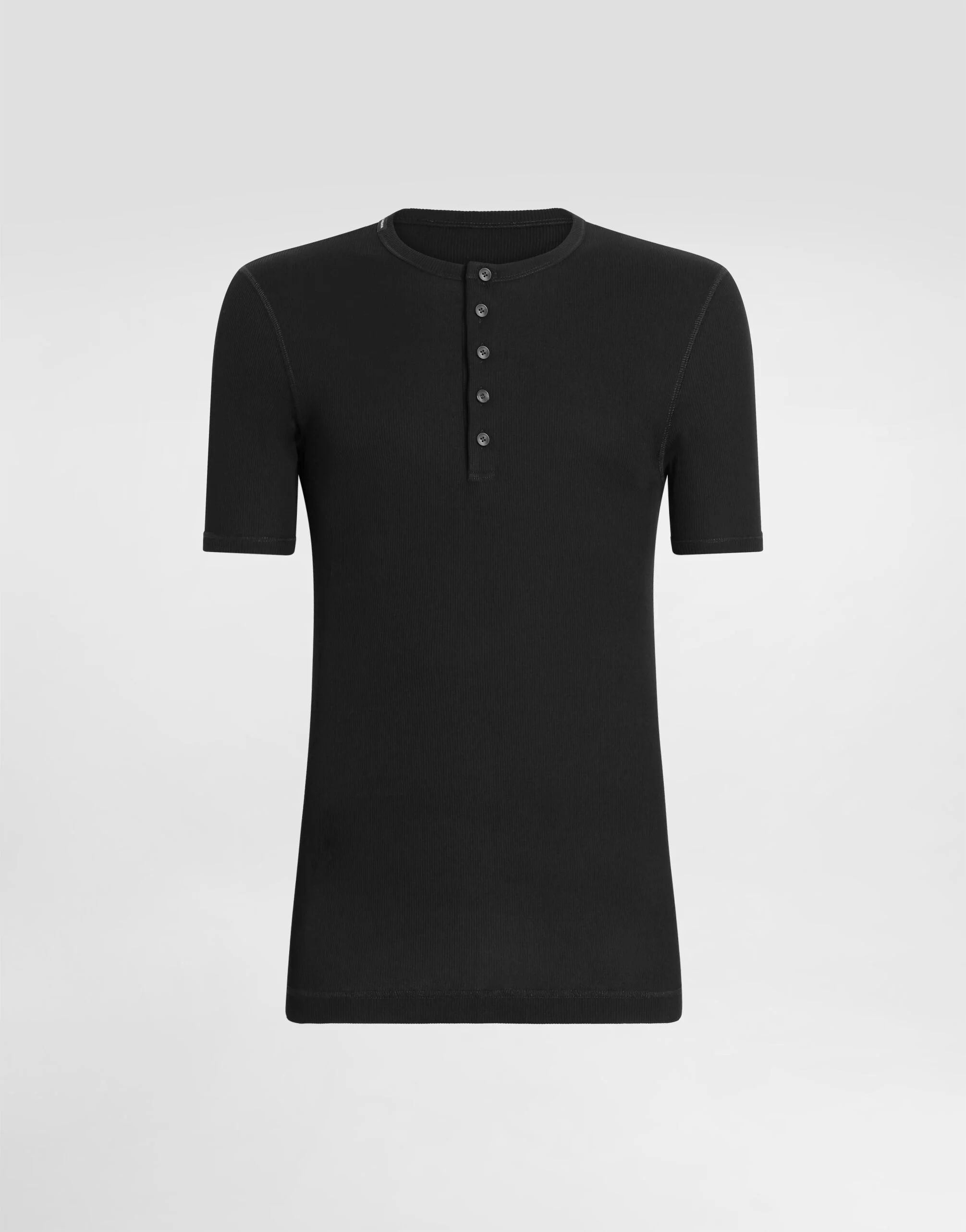 This t-shirt is an example of casual elegance, perfect for any occasion thanks to its versatile design and the quality of the materials used. Serafino cotton t-shirt: • Black • Button closure • Hem at bottom • Short sleeves • Made in Italy External composition: 100% Cotton