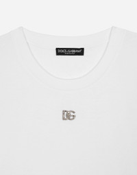 Short-sleeved cotton T-shirt with crystal DG logo: • White • Round neck • Short sleeves • Regular fit • The piece measures 60.5 cm from the rear collar seam on a size IT 40 • The model is 175 cm tall and wears a size IT 40 • Made in Italy Care And Details External composition: 100% Cotton