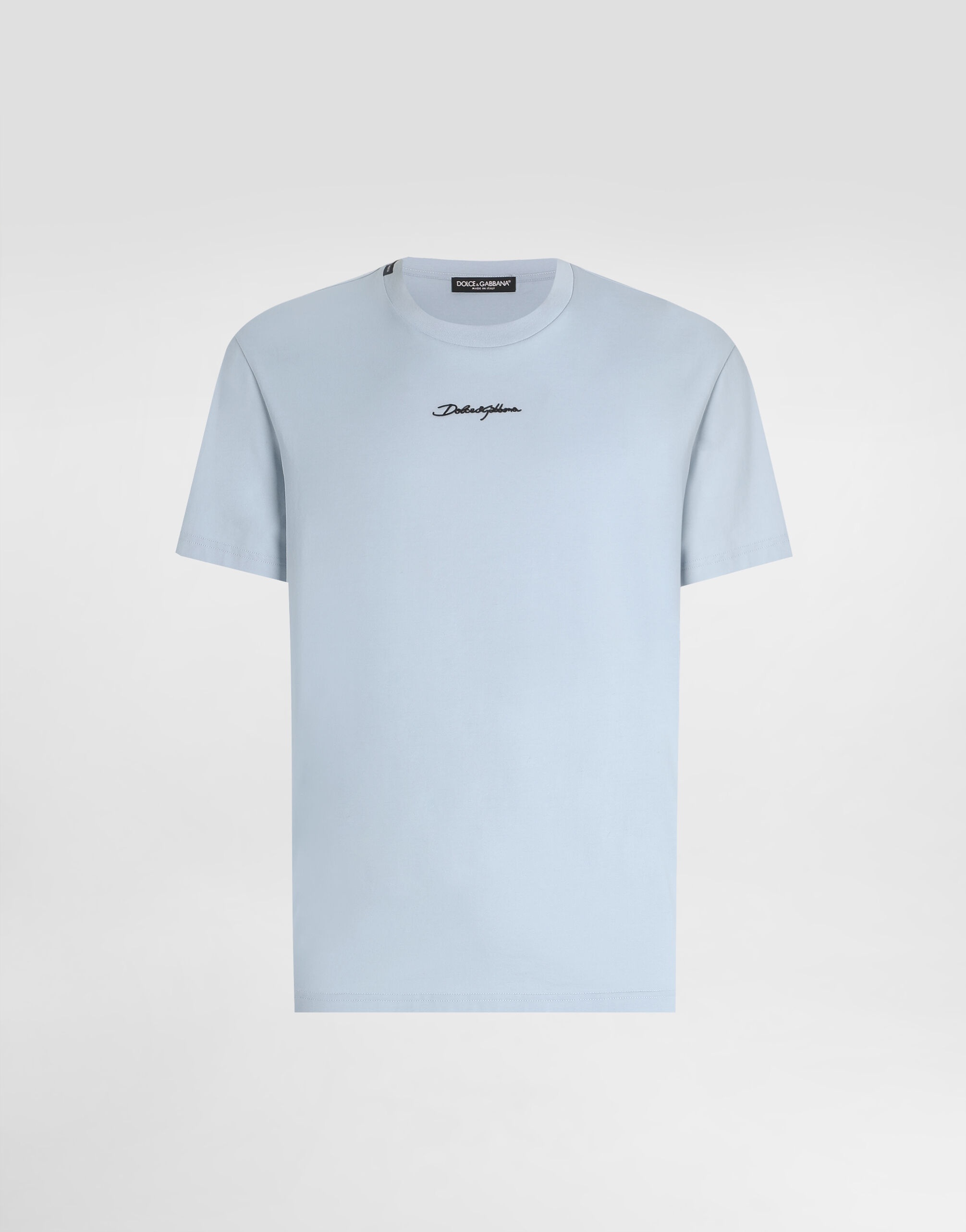 This classic t-shirt is an essential piece for any men's wardrobe. Made of high-quality cotton, it offers comfort and timeless style, perfect for a casual yet well-groomed look. Cotton t-shirt with embroidery patch: • Light blue • Short sleeves • With embroidery patch • The model is 185 cm tall and wears a size 48 IT • Made in Italy External Composition: 100% Cotton