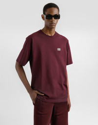The DNA Men's Collection reimagines daily wear with bold contrasts, meticulous details, and innovative silhouettes. Outerwear stands out with clean lines and high-tech materials, merging sportiness with sophistication in sweaters, sweatshirts, and trousers. A striking color palette, including Black Sicily, caramel, cream, burgundy, and stone gray, pairs with iconic prints like Leopard and Polka dots, enhancing the collection's authentic and refined look. Cotton pique T-shirt with metal tag and logo: • Burgundy • Regular fit • Knit neck, sleeves and hem • Short sleeves • Metal Dolce&Gabbana logo tag • The piece measures 71.5 cm from the shoulder seam on a size IT 48 • Made in Italy External composition: 100% Cotton