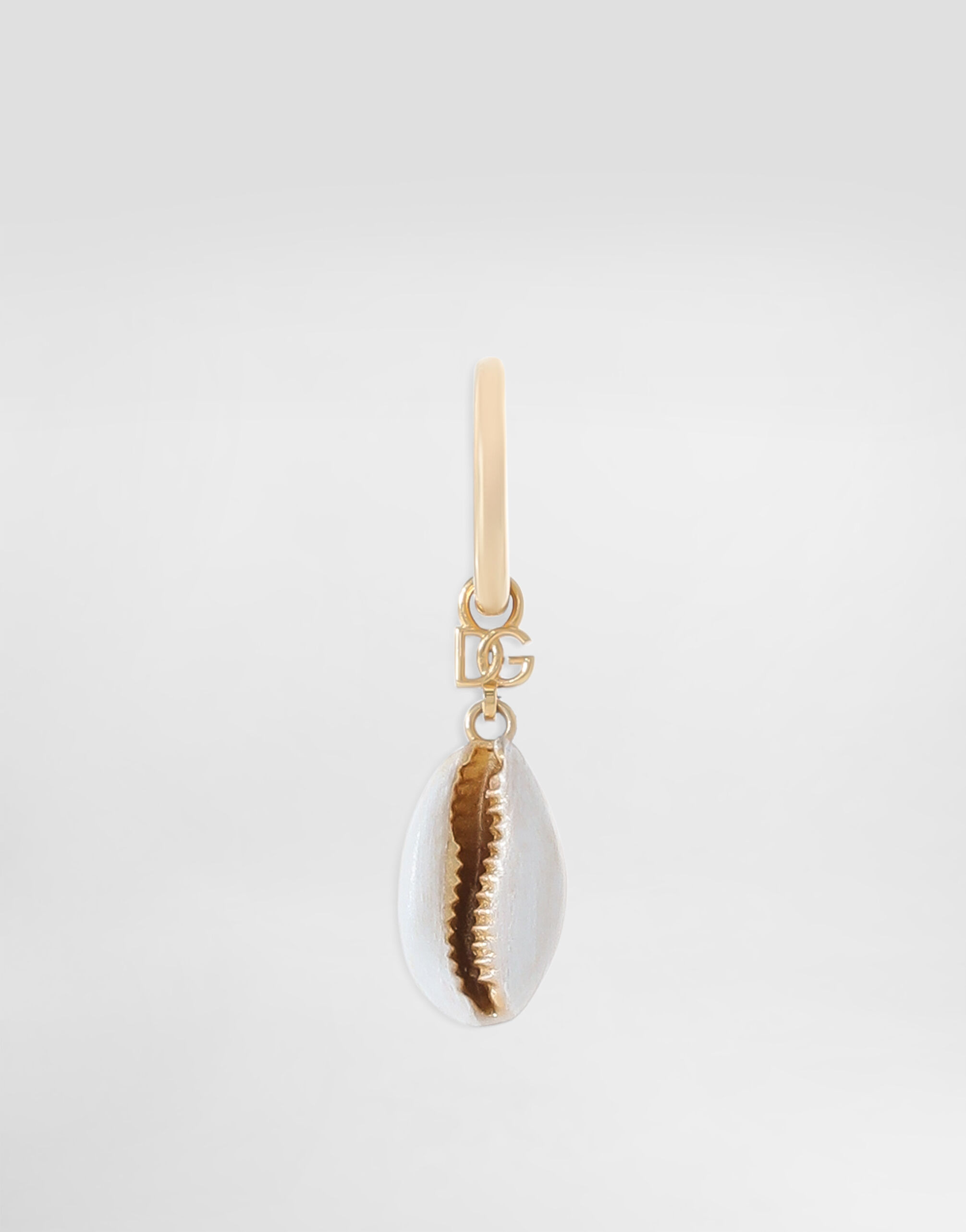 This single earring with shell is a distinctive accessory, perfect to add a touch of elegance and originality to any outfit. Creole single earrings with shell stud: • Gold • Item equipped with a logoed box • Diameter width 5 cm • Made in Italy External Composition: 70% Brass, 30% Steel