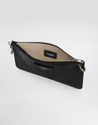Practical and versatile, this crocodile-print calfskin toiletry bag features the leather tag with the Dolce&Gabbana Milano logo. Crocodile-print calfskin toiletry bag: • Black • Zipper with branded slider • Fabric lining • Item comes with a branded dust bag • Measurements: H14 x W24 x D1 cm • Made in Italy External composition: 100% Calfskin Internal composition: 85% Cotton 10% Acrylic 5% Calfskin