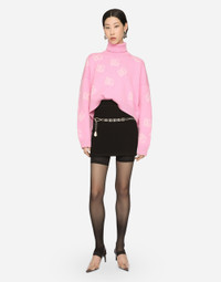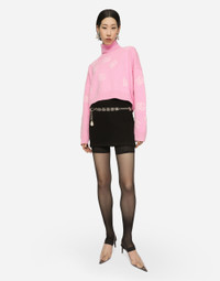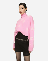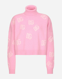 Cropped cashmere sweater with DG logo inlay: • 7-gauge knit • High neck • Long sleeves • Oversize fit • Fine-rib trims • The piece measures 48 cm from the shoulder seam on a size IT 40 • The model is 175 cm tall and wears a size IT 40 • Made in Italy Care And Details External composition: 100% Virgin Wool