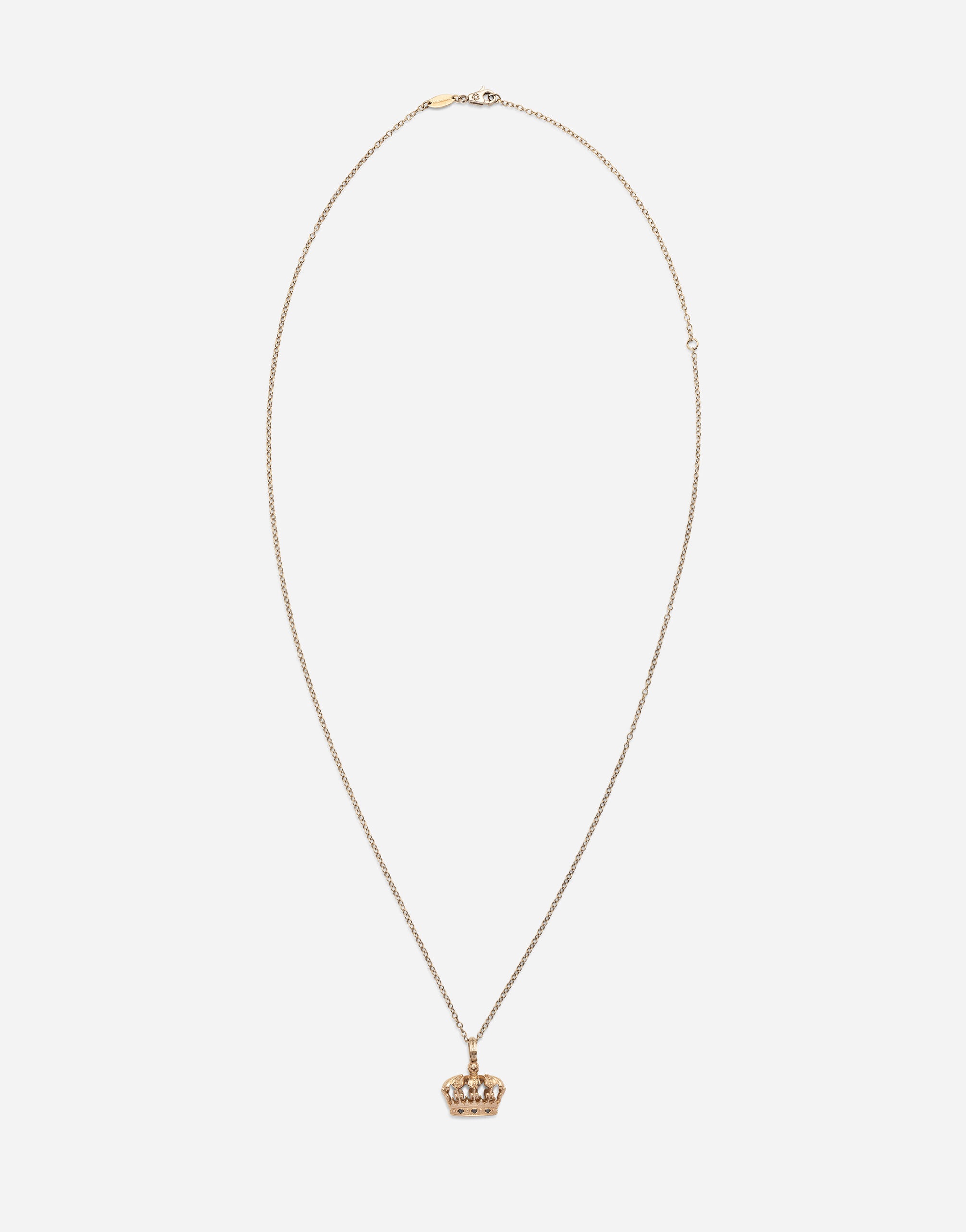 The necklace is characterised by a pendant in the shape of a crown with three black diamonds set in the base. An oval plate bearing the DOLCE&GABBANA logo has been placed by the closure. Technical specifications • Gold 18 Kt. • Length. 55 + 10 cm adjustable. • Gemstones. 3 round black diamonds. • Made in Italy External composition: White 18 kt Gold