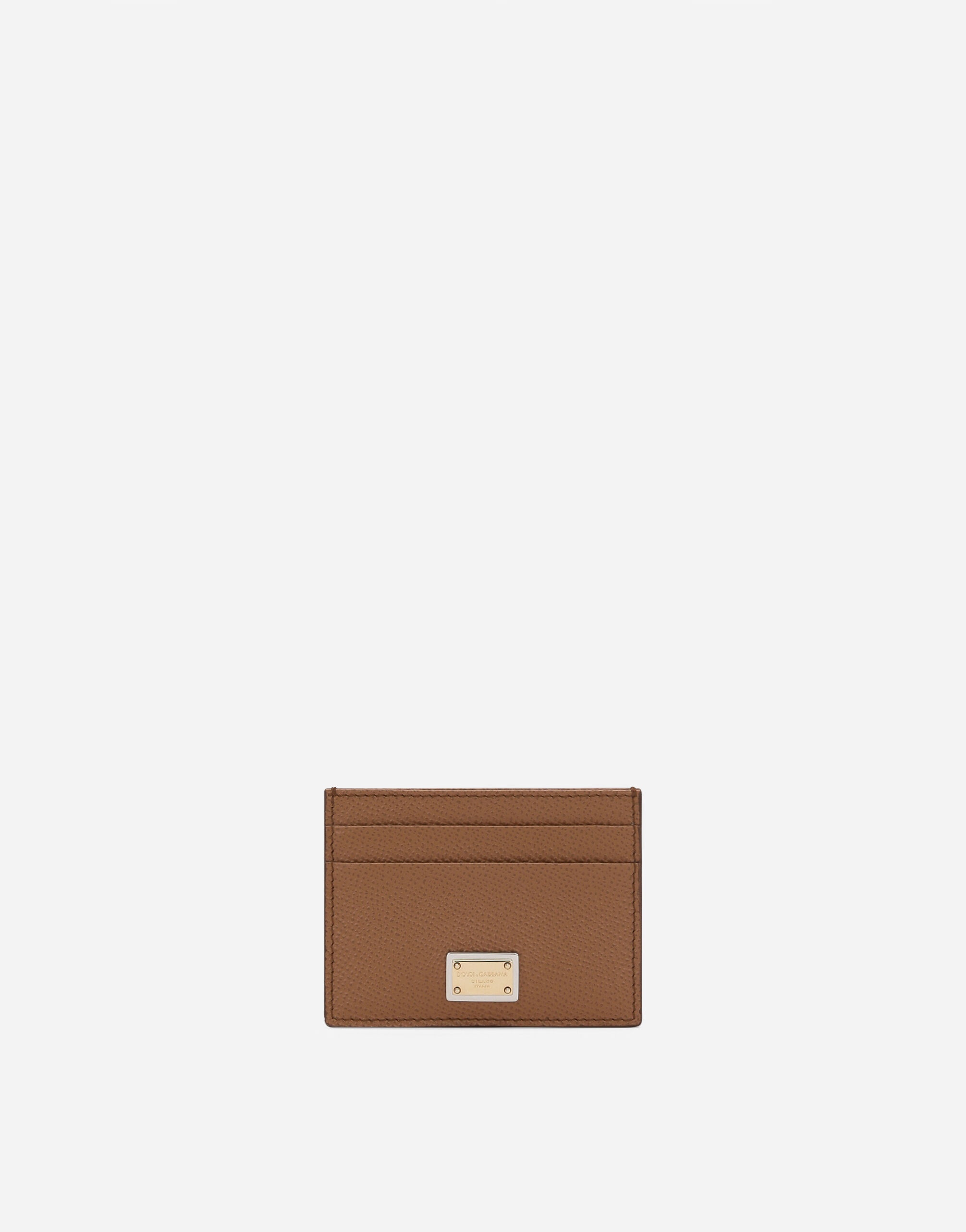 Practical and understated, this card holder comes in Dauphine calfskin. Perfect for carrying in your pocket or smaller bags, it features the branded plate with two metal plating finishes. Dauphine calfskin card holder with branded tag: • Brown • Four front card slots and one on top • Measurements: H7.5 x W10 x D0.5 cm • Made in Italy External composition: 100% Calfskin Internal composition: 100% Viscose