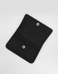 Elegant and functional, this card holder is perfect for those who want a refined and practical accessory. Dauphine Calfskin card holder with plate: • Black • Snap buttons closure • Vintage brass plating • External customization with bigalvanic plate • Internal customization with logoed flag label • Special processing • Item equipped with a logo bag and a logoed box • Measurements: H7 x W11 cm • Made in Italy External Composition: 100% Calfskin Internal Composition: 95% Calfskin, 5% Viscose This product is made with leather from tanneries certified according to environmental standards.