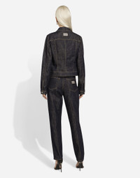 The spirit of the 1960s is taking over the new Flower Power collection. The focus is a head-to-toe floral look built around pairing and layering rose, anemone and floral bouquet maxi-prints. A cosmopolite poised between playful and sexy, this woman interprets the austerity and elegance of the 1960s, harking back to boldly opulent imagery that here at Dolce&Gabbana is condensed and reinterpreted through silhouettes, ample proportions and airy shapes, bringing femininity and sensuality to the forefront. Cotton denim jeans: • Blue • Regular rise • 5 pockets • Branded metal and leather tag • Branded label on the coin pocket • Inner leg: 73 cm • Hem: 18.5 cm • Zipper and branded metal button fastening • The model is 175 cm tall and wears a size IT 40 • Made in Italy External composition: 100% Cotton