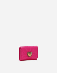 Elegant and compact, this Devotion continental wallet comes in soft quilted nappa leather. It features the iconic bejeweled branded heart in a metal alloy embellished with pearl inlay and is perfect for smaller bags. Devotion French flap wallet in quilted nappa leather: • Fuchsia • Front flap with hidden magnetic fastening • Four card slots • One bill compartment • Central coin pocket with flap and press-stud fastening • Measurements: H12 x L9 x D2 cm • Made in Italy External composition: 100% Lambskin Internal composition: 80% Calfskin 20% Viscose