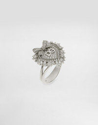 18 kt white gold ring featuring a magnificent Sacred Heart enriched with 23 marquise-cut diamonds, a symbol of unconditional love and eternal faith, and an elegant bow adorned with diamonds. The ring is decorated with a beautiful baroque ornament, inspired by the Bourbon era. The DG logo is engraved inside the heart. Technical features: 18Kt white gold. Precious stones: - 106 round diamonds, brilliant cut, approximately 0.45 ct; VVS-VS; color: D-G; - 23 marquise-shaped diamonds, modified brilliant cut approximately 0.70 ct; VVS-VS; color: D-G. Made in Italy White Gold 750/000