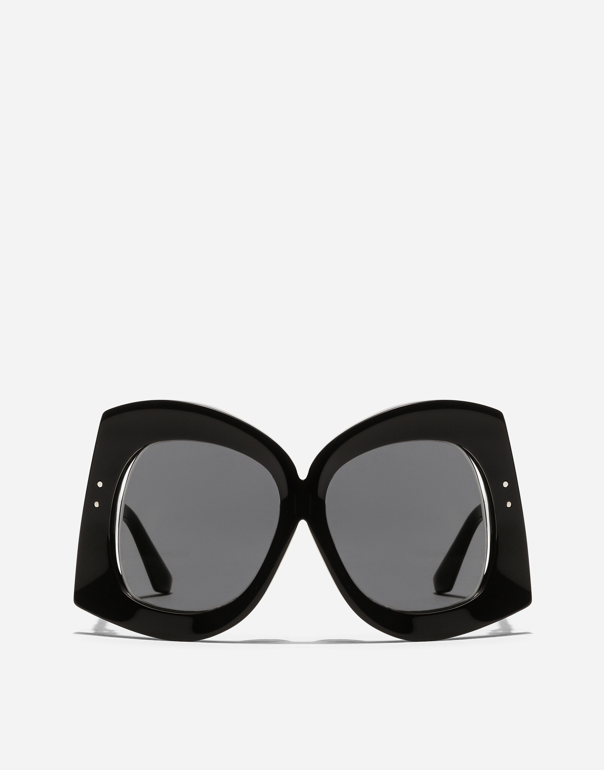 The women's FW25 runway sunglasses offer a modern reinterpretation of a 1960s vintage aesthetic.All styles, crafted in acetate with intricate detailing that enhances their three-dimensionality.The oversized front shapes create a bold statement, softened by a gentle lateral cut on the lenses. • Black acetate frame • Black acetate temples • Gradient dark grey lenses • 100% UV protection • Size bridge - temple- lens: 15 - 135 - 55 mm • Fitting: Standard • Packaging: Institutional • Made in Italy