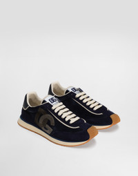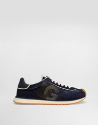 These iconic and super-light DG Cushion sneakers come in mixed materials with the DG logo. DG Cushion sneakers in a mix of velvet and calfskin with the DG logo: • Blue • Flat laces • Calfskin footbed with heat-stamped logo • Rubber sole • Item comes with a branded dust bag • Made in Italy External composition: 59% Calfskin 29% Viscose 10% Cotton 2% Polyester Internal composition: 89% Lambskin 11% Goatskin
