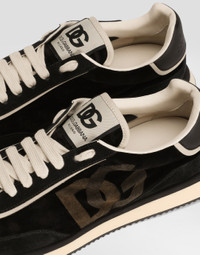 These iconic and super-light DG Cushion sneakers come in mixed materials with the DG logo. DG Cushion sneakers in a mix of velvet and calfskin with the DG logo: • Black • Flat laces • Calfskin footbed with heat-stamped logo • Rubber sole • Item comes with a branded dust bag • Made in Italy External composition: 59% Calfskin 29% Viscose 10% Cotton 2% Polyester Internal composition: 89% Lambskin 11% Goatskin