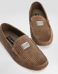 Elegance and comfort meet in the perforated split leather slipper of the DG Driver line, perfect for completing a formal look with a touch of style. Slipper DG Driver in perforated Calfskin: • Brown • Loafer construction • TPU sole • Latex fussbett wrapped in leather with label • Palladium and ruthenium electroplating • Item equipped with a black cotton bag and black embossed box • Made in Italy External Composition: 100% Calfskin Internal Composition: 100% Lambskin