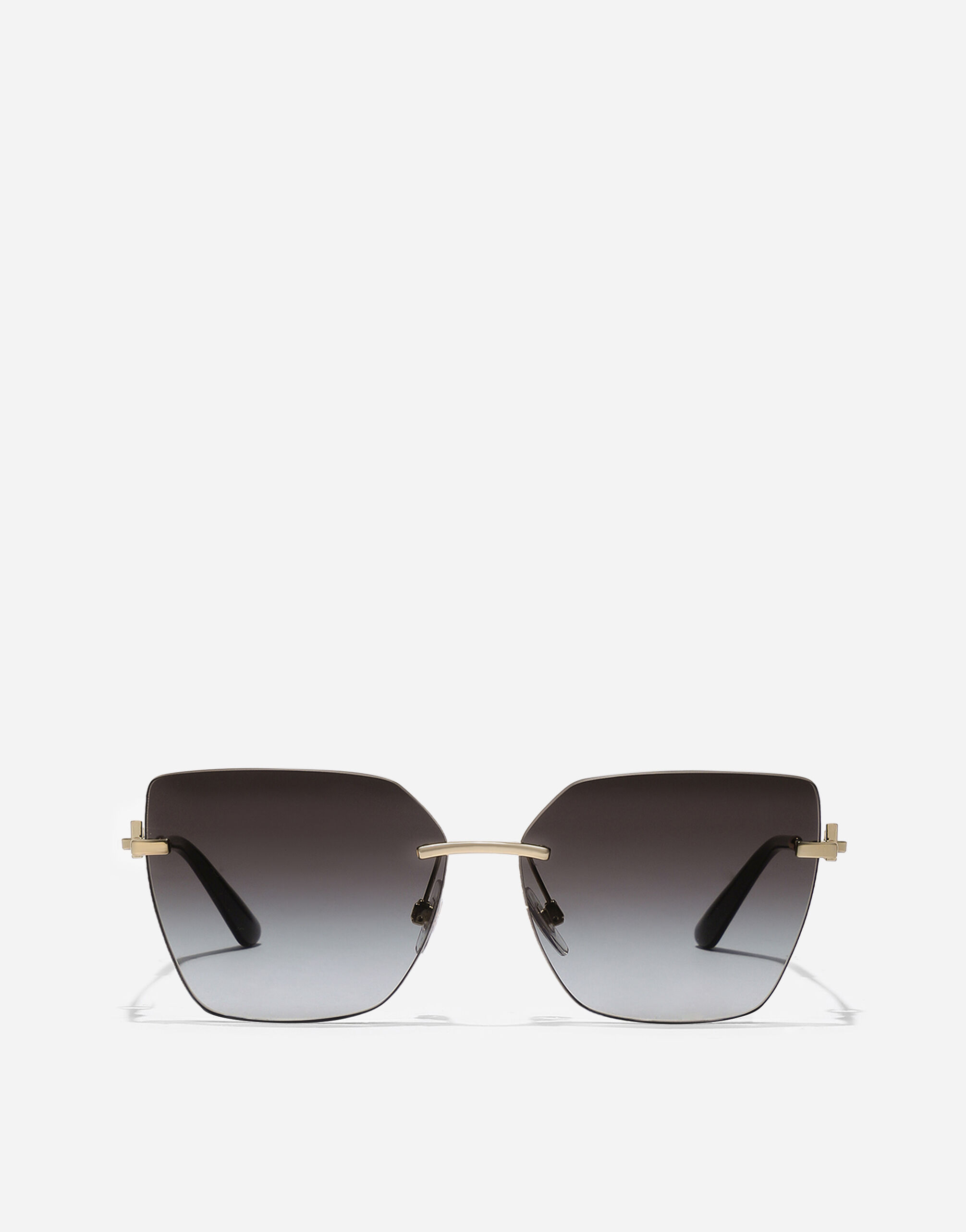 This delicate rimless frame showcases a refined feminine silhouette, complemented by sleek metal temples that seamlessly integrate the iconic DG crossed logo. Enhanced by sophisticated gradient lenses. • Metal gold frame • Metal gold temples with black terminal • Dark grey lenses • 100% UV protection • Size bridge - temple - lens: 14- 140 - 52.2 mm • Fitting: Adjustable nosepads • Packaging: Institutional • Made in Italy