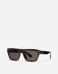 Acetate rectangular model with exclusive metal details on the front; DG crossed logo embellishes the bold temples. • Havana acetate frame • Dark havana acetate temples • Dark brown lenses • 100% UV protection • Size lens - bridge - temple: 54 - 21 - 145 mm • Fitting: Standard • Packaging: Institutional • Made in Italy