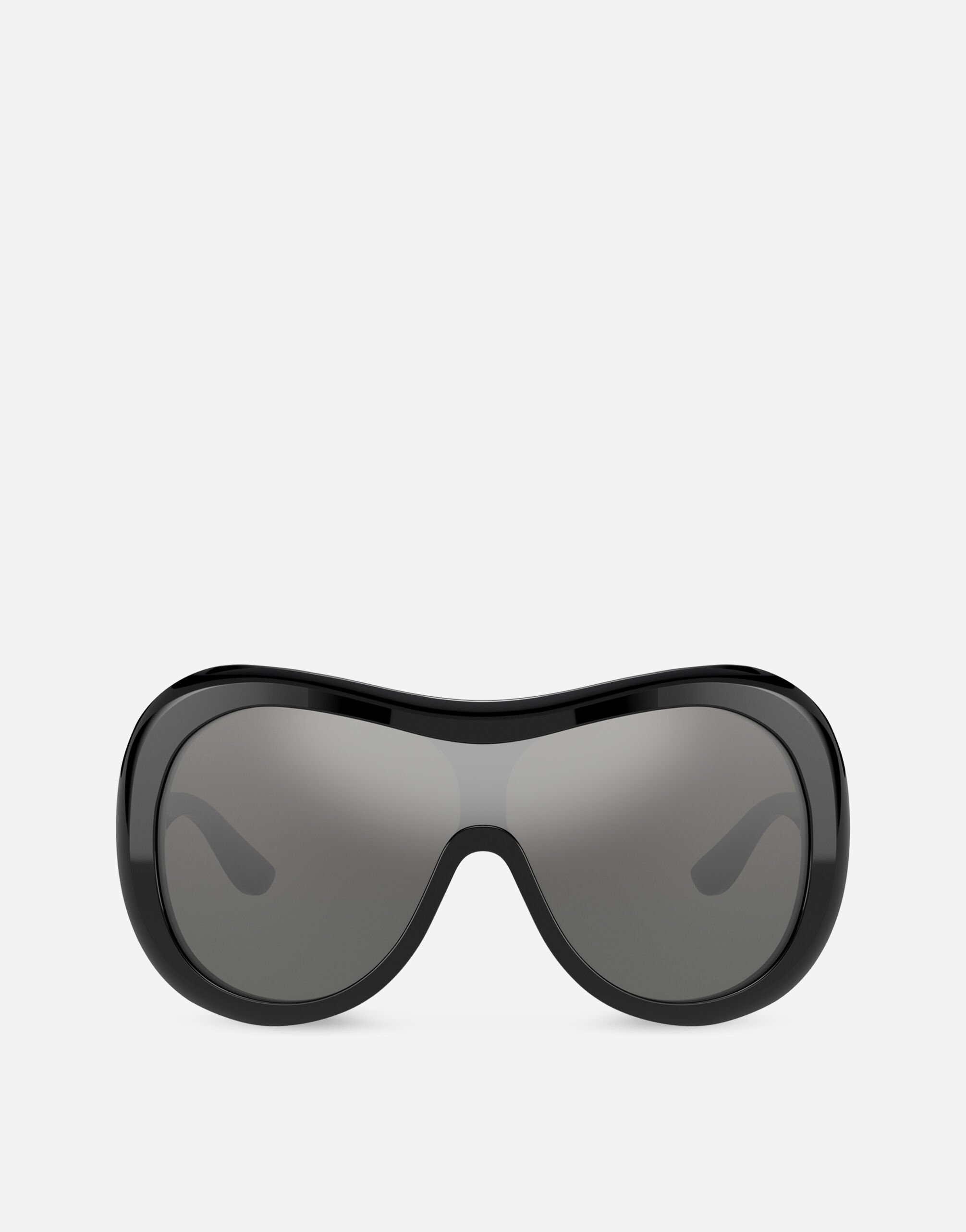 A new version of the oversize mask proposed in shades of black, havana and leo. • Black acetate frame • Black acetate temples • Grey mirror silver gradient lenses • 100% UV protection • Size: - - 145 mm • Fitting: Standard • Packaging: institutional • Made in Italy