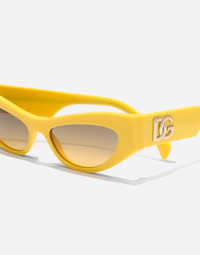DG Logo acetate sunglasses with a butterfly elegant shape characterized by DG Crossed metal logo for a sophisticated effect • Yellow acetate frame • Yellow acetate temples • Yellow gradient grey lenses • 100% UV protection • Size: 52 - 16 - 145 mm • Fitting: Universal • Packaging: DG Logo • Made in Italy