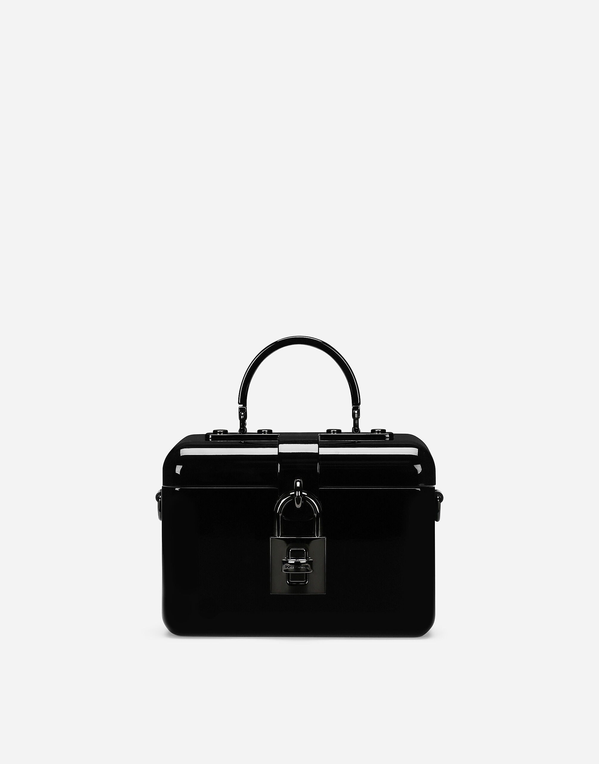 Flaunting bold, contemporary allure, the new Dolce Box bag comes entirely in acrylic glass with a top handle and a detachable chain strap. Acrylic glass Dolce Box bag: • Black • Ruthenium-plated padlock fastening • Top handle and detachable chain strap • Nappa leather lining • Item comes with a branded dust bag • Measurements: H13.5 x W19 x D11 cm External composition: 50% Polymethyl methacrylate 35% Aluminum 15% Brass Internal composition: 100% Lambskin