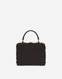 The Dolce Box bag embodies the brand’s craftsmanship, love and attention to detail. Elegant and unique, it comes in satin with gemstone embellishment. Satin Dolce Box bag with embroidery: • Black • Fastening with enameled flower embellishment and padlock • Top handle and adjustable, detachable strap in iguana-print calfskin • Calfskin lining • Inner pocket with concealed magnetic fastening and a card slot fastening • Item comes with a branded dust bag • Measurements: H14.5 x W19 x D7 cm • Made in Italy External composition: 58% Viscose 22% Silk 20% Calfskin Internal composition: 95% Calfskin 5% Poplar Plywood