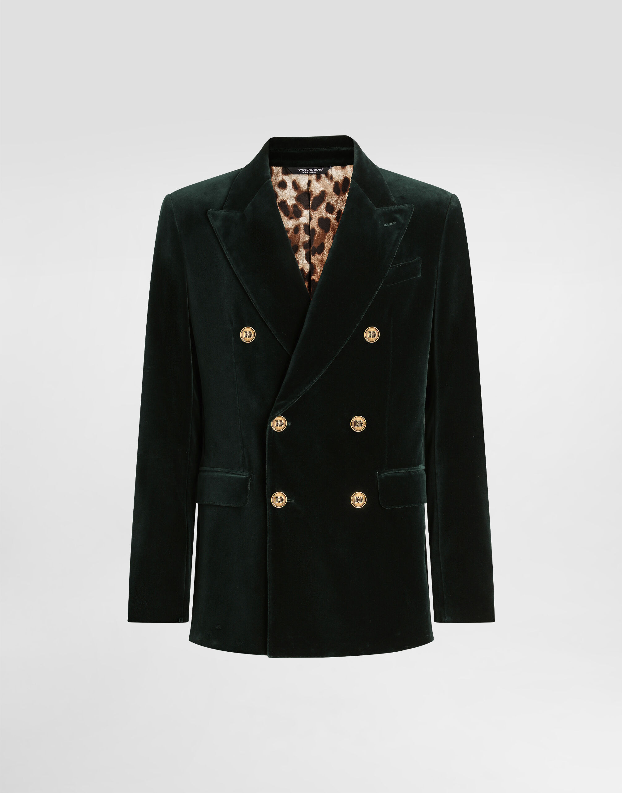 Double-breasted cotton velvet jacket: • Green • Sicilia Light deconstructed shape • Rounded lapels • With buttons • Structured and lined • The model is 185 cm tall and wears a size 48 IT • Made in Italy External Composition: 100% Cotton Internal Composition: 100% Polyester