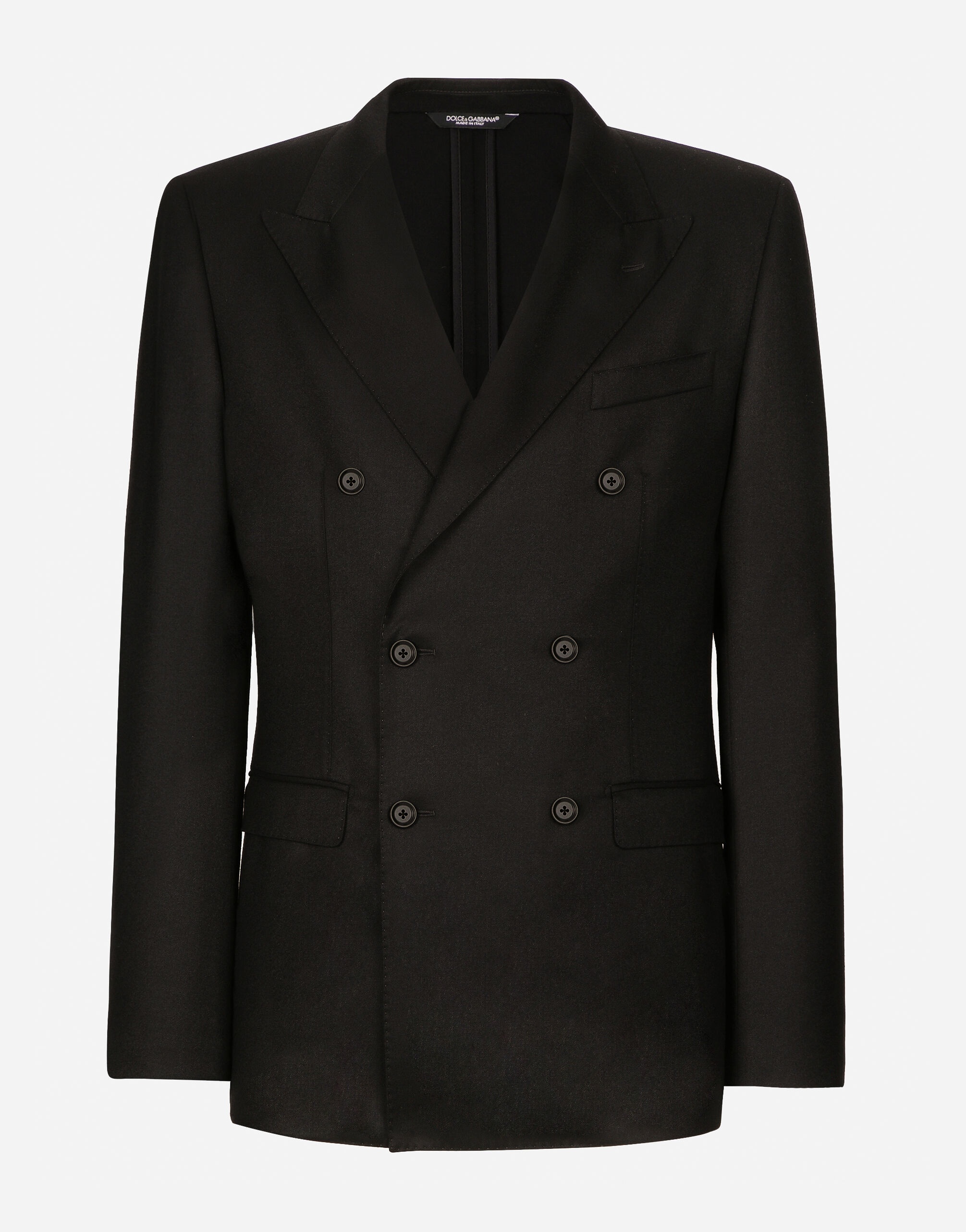 In the “Sartoriale” collection, iconic Italian sartorial heritage is presented from a new perspective, made up of lines, silhouettes and details, concealed buttoning, geometric lapels, and jackets that have seen their proportions completely overhauled. The tale is a journey embarked upon to discover a new kind of tailoring that is perfect in terms of fit, with meticulous attention to detail, that strives to speak and represent the style of the wearer, through small - yet significant - details that will make every piece unique. Tailored double-breasted wool jacket: • Black • Regular Taormina fit • Peak lapels • Button fastenings on the front • Outer flap pockets and breast pocket, inner welt pockets • Buttoned cuffs • Central vent • Partially lined • The piece measures 73.5 cm from the rear collar seam on a size IT 48 • Made in Italy External composition: 100% Virgin Wool Internal composition: 100% Silk