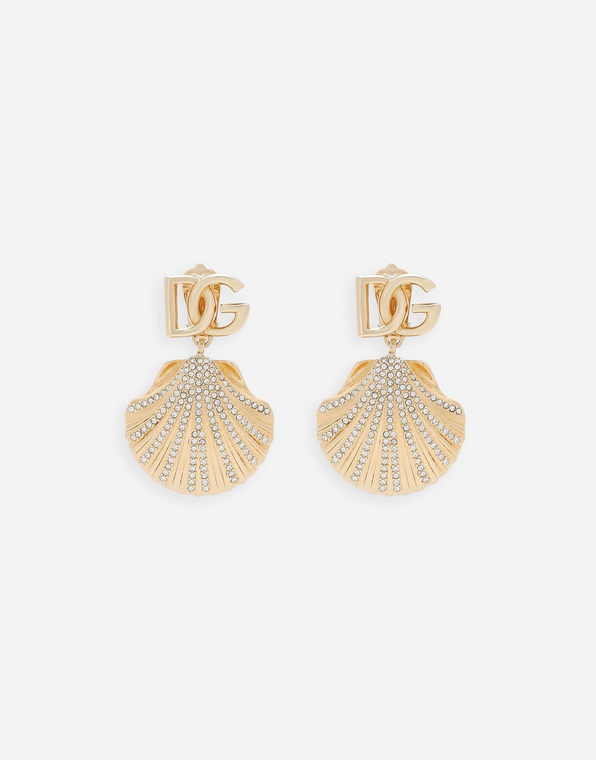 Earrings with rhinestone-detailed shell and DG logo