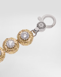 An elegant bracelet made of 18 Kt white and rose gold, embellished with rhodolite garnets and colorless sapphires. The deep red of the garnets, an eternal symbol of passion, evokes that magical moment when the crimson of sunset gives way to the first glow of evening. The sophisticated design and the color combination of the gems make this bracelet a jewel of uniqueness and refinement. On the back, a tag with the Dolce&Gabbana logo adds a distinctive touch, a seal of authenticity and style. Gemological Details: 3 rhodolite garnets: red color, rectangular cushion shape, mixed cut; 58 sapphires: colorless, round shape, brilliant cut. Made in Italy White and rose gold 750/000