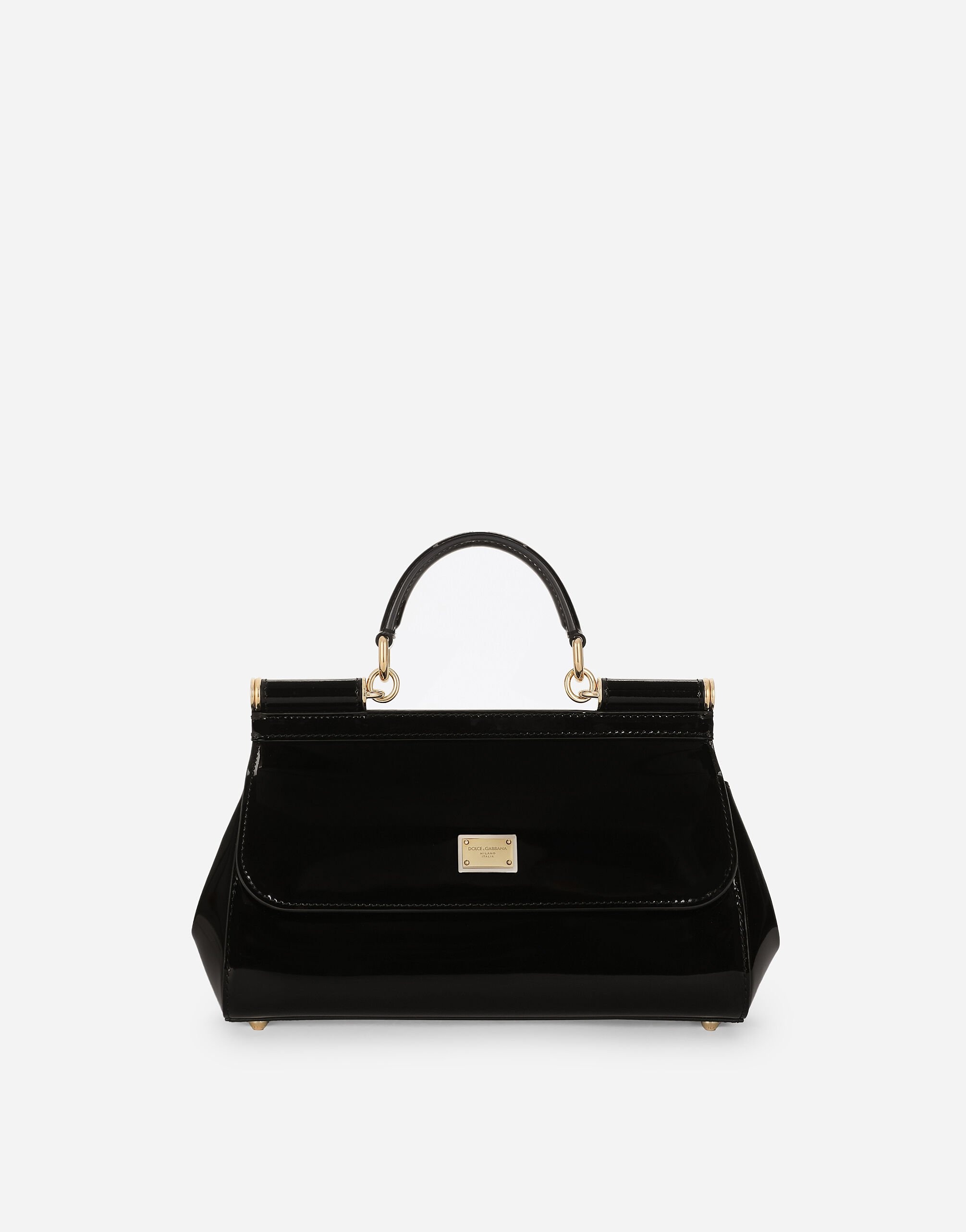 A brand icon, this practical and compact Sicily bag is perfect for carrying your essentials with you. Made from polished calfskin, it is embellished by the branded tag featuring two metal plating finishes. Elongated Sicily handbag in polished calfskin: • Black • Front flap with hidden double magnetic fastening • Branded tag featuring two metal plated finishes • Top handle and adjustable, detachable strap in polished calfskin • Fabric lining and flat pocket • Item comes with a branded dust bag • Measurements: H17 x W25 x D9 cm • Made in Italy External composition: 100% Calfskin Internal composition: 88% Cotton 12% Calfskin