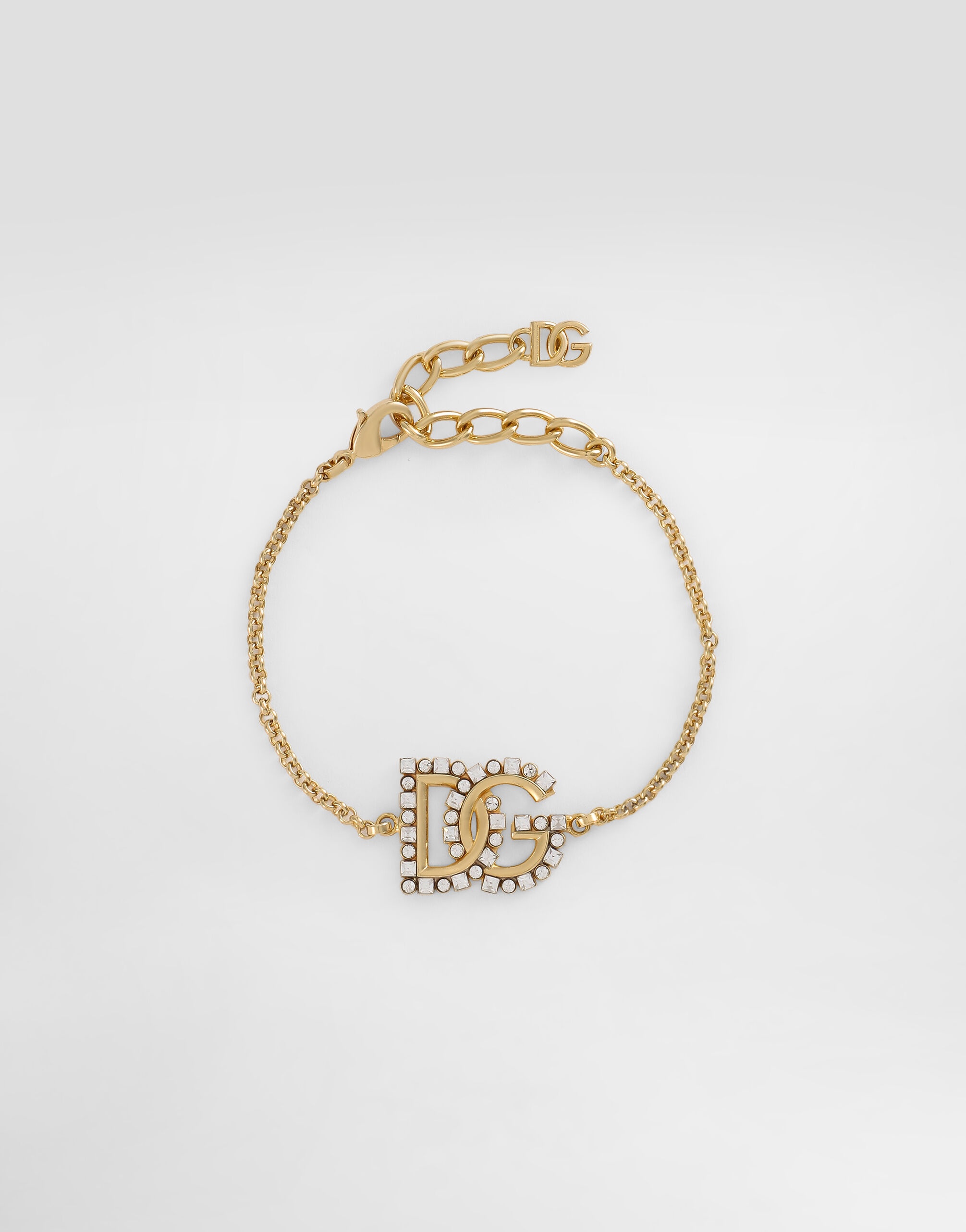 The Everyday Women's Collection reimagines contemporary daily wear with Dolce&Gabbana's signature style codes. Iconic fabrics mix with standout details like embroidered flowers, crystals, and jewel buttons, infusing elegance into every look. Gray animal print accented with green and purple, hyper-geometric jewelry, voluminous shapes and transparencies add unique touches. Men's tweed is reinvented with graphic twists, creating distinctive pieces that reflect refined sensuality. Fine link bracelet with DG logo: • Silver • Clasp fastening • Length: 16+4 cm • Nickel-free and hypoallergenic materials • Engraved logo • Made in Italy Composition: 90% Brass 10% Glass