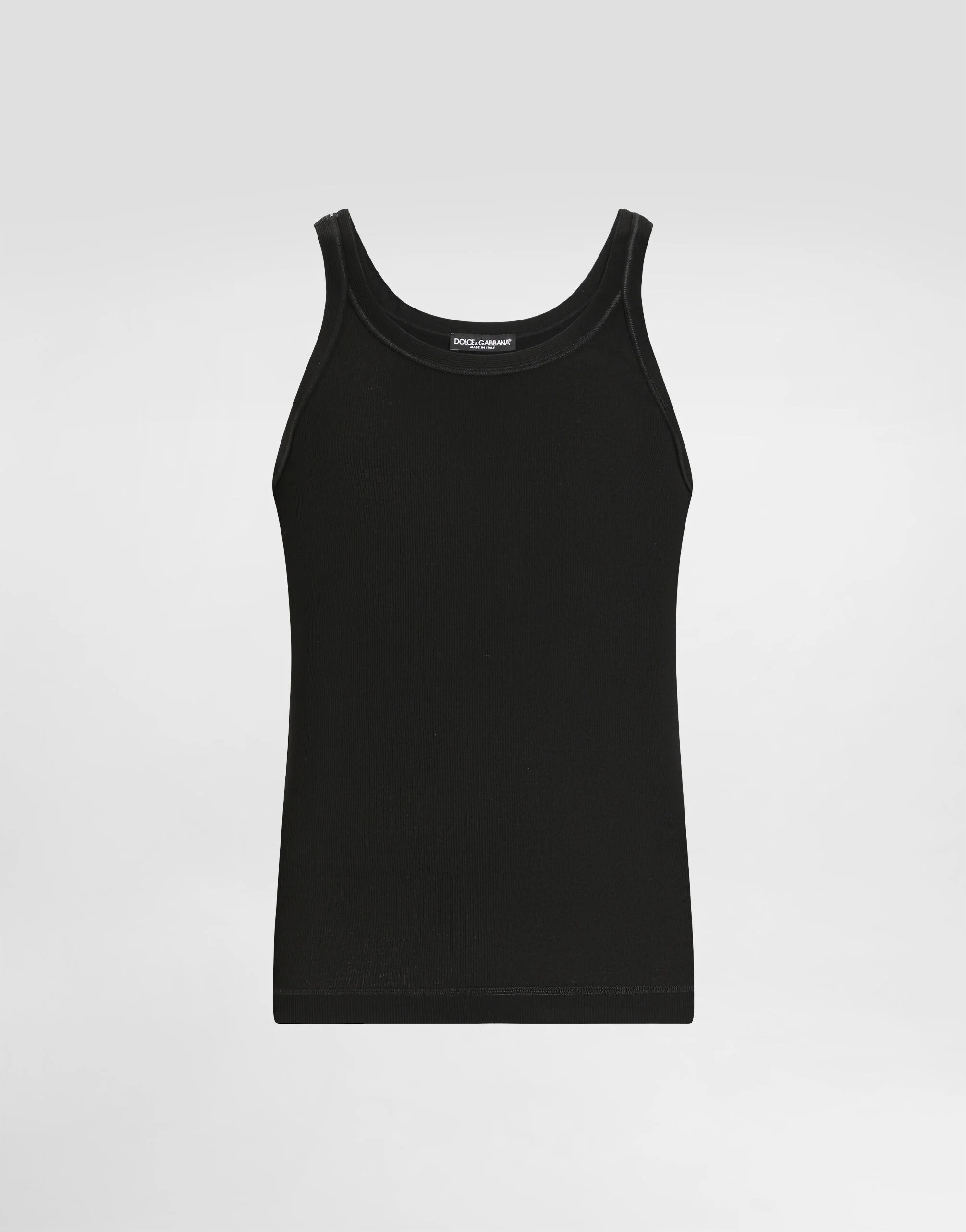 Fine-rib narrow-shouldered singlet in washed cotton jersey: • Slim fit • Round neck • Fabric label with Dolce&Gabbana logo • The piece measures 59 cm from the rear collar seam on a size IT 48 • The model is 185 cm tall and wears a size IT 48 • Made in Italy Care And Details External composition: 100% Cotton