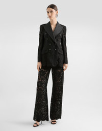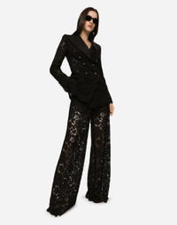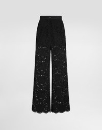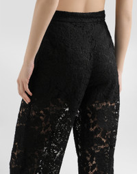 Flared branded stretch lace pants: • Dolce high waist • Front slant pockets • Stretch silk crepe de chine high-waisted panties • Inner leg: 88 cm • Hem: 30 cm • Zipper and canneté-covered button with DG logo • The model is 175 cm tall and wears a size IT 40 • Made in Italy Care And Details External composition: 51% Viscose 24% Cotton 20% Polyamide 5% Spandex Internal composition: 91% Silk 9% Spandex