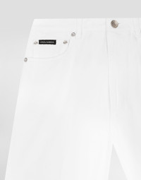The Italian summers of the 1960s, the candid purity of white, the sophisticated elegance of the jet set of that era. The imagery of the FW24/25 Capri Collection encapsulates all this flawlessly. The pieces range from floaty poplin silhouettes or sack-style dresses and skirts, to brocade outerwear and floral-inlay fabric shirts. The iconic bags – the Logo Bag, the Sicily Bag and the Dolce Box – complement the looks, while the shoes come embroidered with designs inspired by the crystal-clear sea of Capri. Flared denim jeans: • White • High-waisted • 5 pockets • Branded label on the coin pocket • Branded metal and leather tag on the back pocket • Inner leg: 88 cm • Hem: 30 cm • Zipper and branded metal button fastening • The model is 175 cm tall and wears a size IT 40 • Made in Italy Composition: 100% Cotton