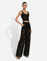 Flared floral cordonetto lace pants with DG logo