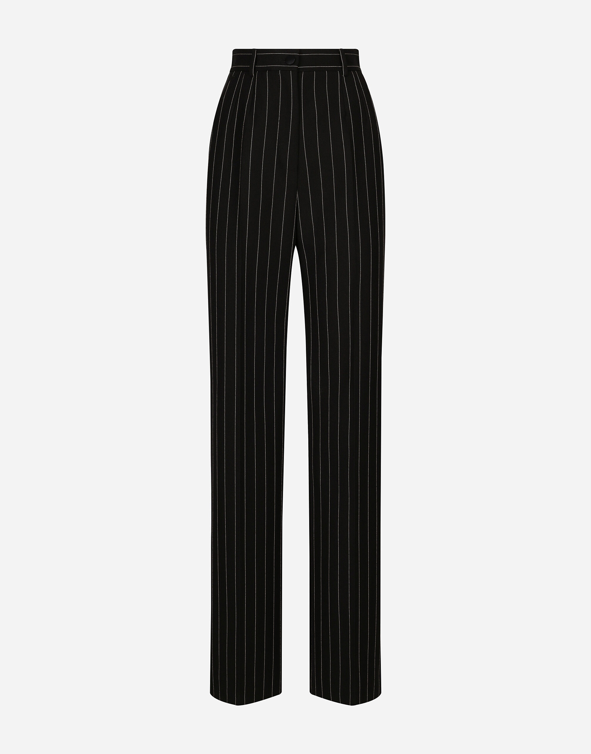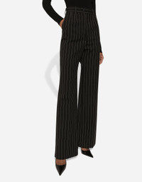 In the Black Sicily Collection, black, the absolute protagonist, becomes sensual black, sheer black, Dolce&Gabbana black. The key concept is “Black on Black”. Playing around with proportions, volumes, layered fabrics and sheer details, this style becomes absolute, bold and sexy. Unique and unmistakable, it is conveyed through the contrasts between glossy and matte fabrics, lines, volumes and special details, thereby expressing a woman’s various personalities and the true identity of Dolce&Gabbana. Flared pinstripe wool pants: • Black • High-waisted • Front slant pockets • Welt back pockets with buttons • Belt loops • Inner leg: 88 cm • Hem: 28 cm • Concealed front zipper and covered button fastening • The model is 175 cm tall and wears a size IT 40 • Made in Italy External composition: 100% Virgin Wool