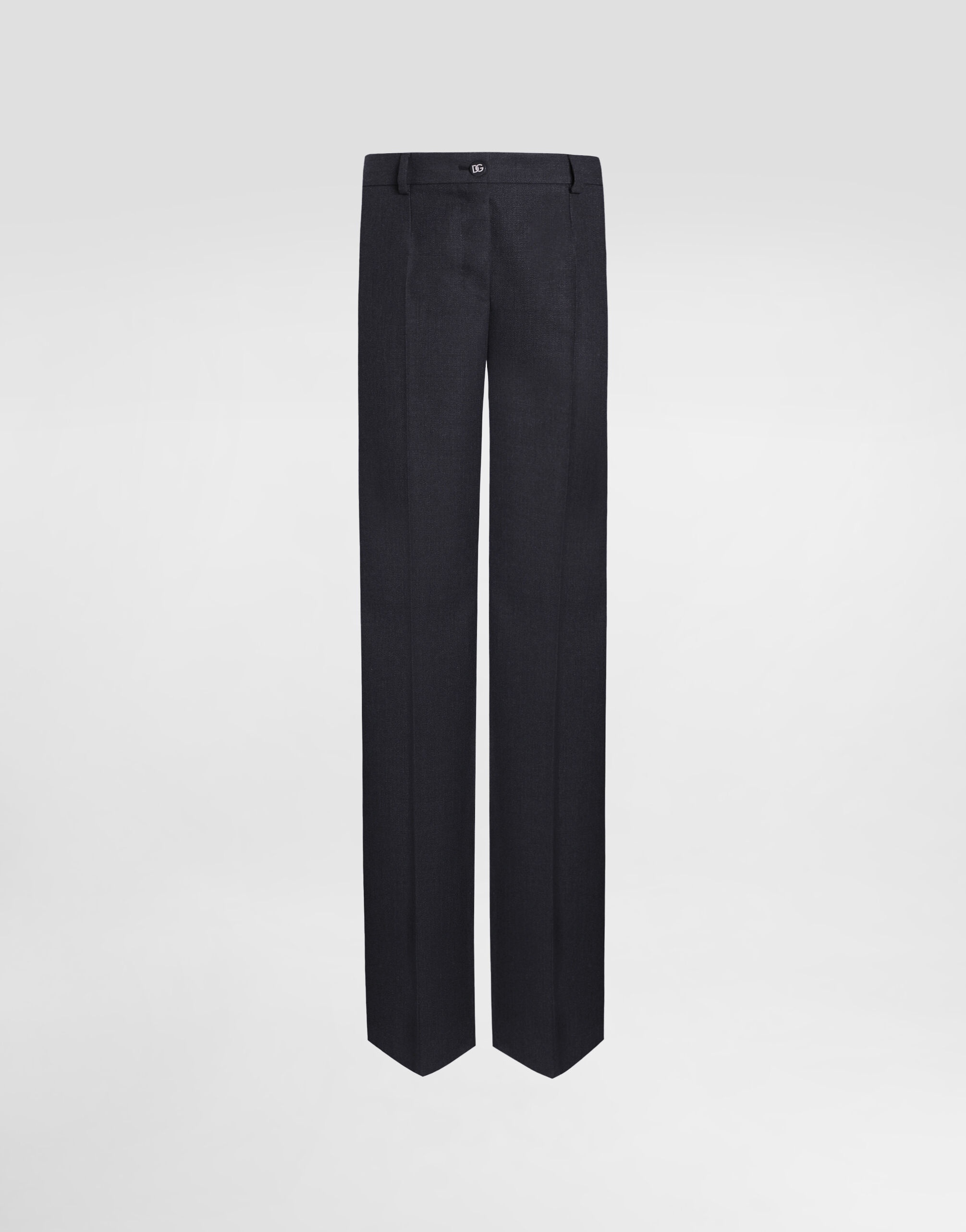 The Everyday Women's Collection reimagines contemporary daily wear with Dolce&Gabbana's signature style codes. Iconic fabrics mix with standout details like embroidered flowers, crystals, and jewel buttons, infusing elegance into every look. Gray animal print accented with green and purple, hyper-geometric jewelry, voluminous shapes and transparencies add unique touches. Men's tweed is reinvented with graphic twists, creating distinctive pieces that reflect refined sensuality. Flared woolen pants: • Gray • Regular rise • Front slant pockets • Welt back pockets • Belt loops • Inner leg: 90 cm • Hem: 26 cm • Zipper and button fastening with DG logo • The model is 175 cm tall and wears a size IT 40 • Made in Italy External composition: 100% Virgin Wool