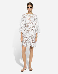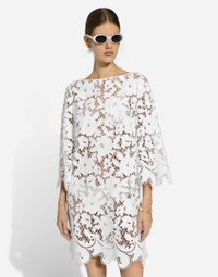 Floaty short cotton dress with floral openwork embroidery