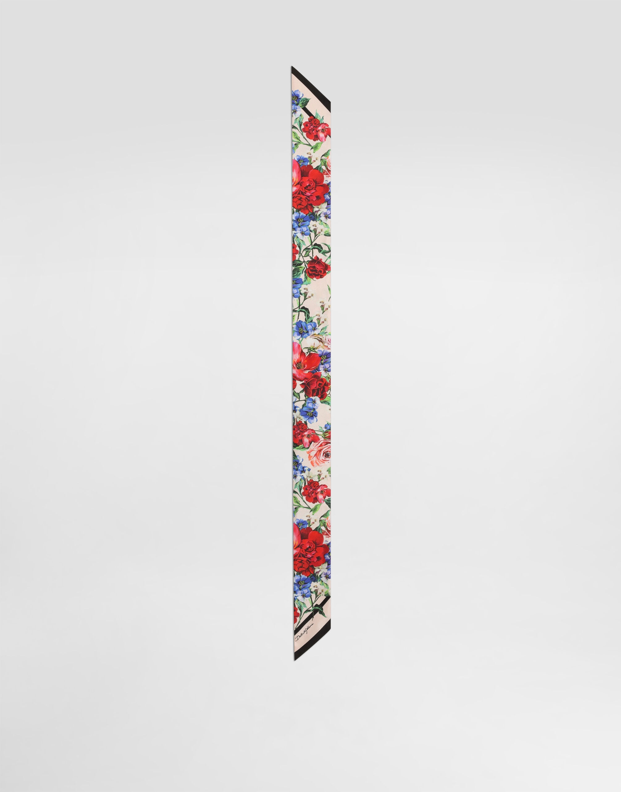 The Spring/Summer 2025 Women’s Collection is celebrating Italian beauty through bold and charismatic femininity. The 50s-inspired lingerie is the star, intermingling with fitted dresses, corsets and oversize trench coats. The iconic jackets have been updated with cropped cuts and modern inserts, while the floral prints add a romantic edge. The eveningwear shines with light fabrics and crystals, accompanied by look-defining accessories, from iconic bags to the cross earrings. Silk twill headscarf with floral print: • Multi-colored • “Dolce&Gabbana” logo • Measurements: 6 x 100 cm • Made in Italy External composition: 100% Silk