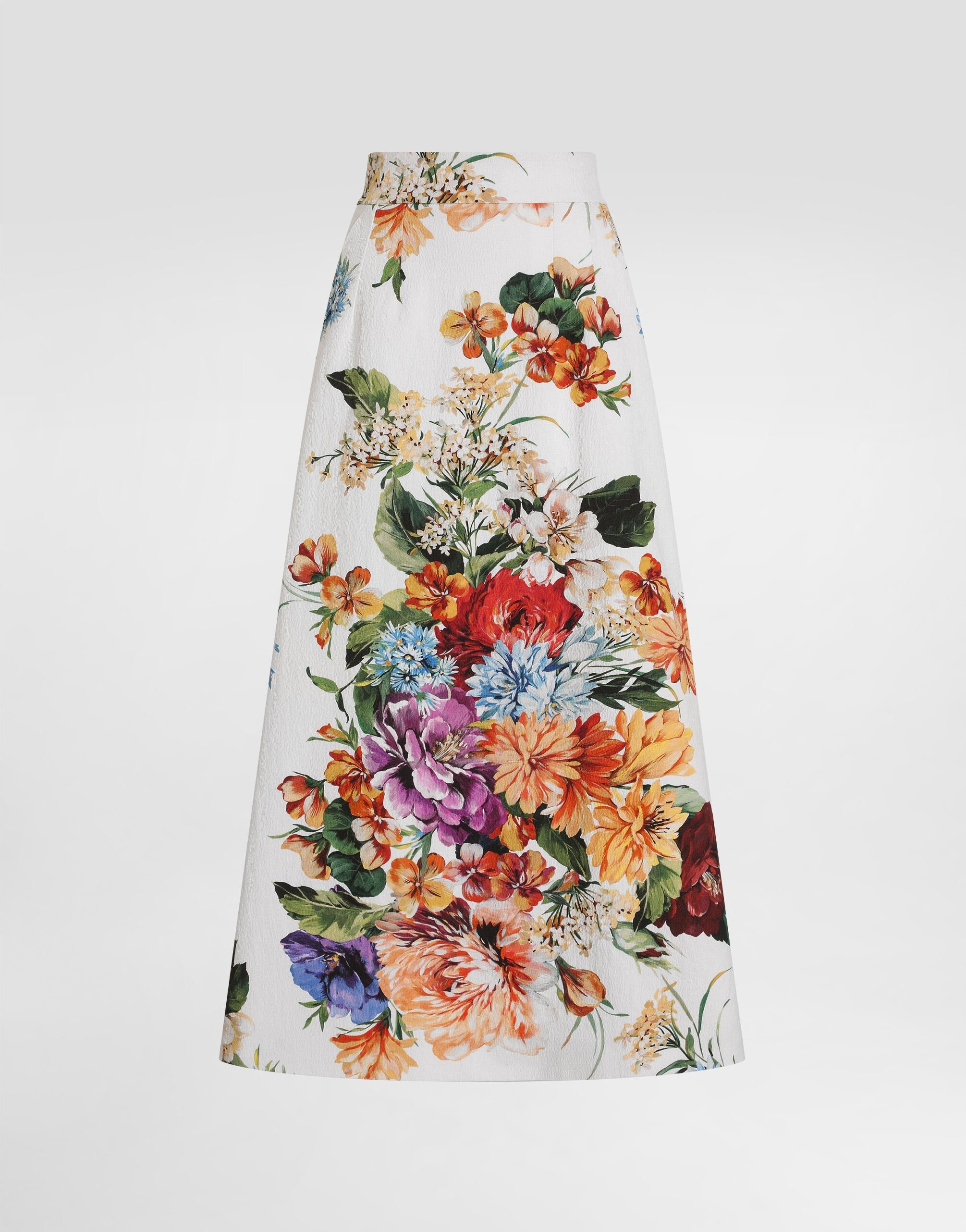 This skirt is a versatile and refined piece that is perfect for adding a touch of floral elegance to your wardrobe. With thoughtful details such as slits on the hips and a high belt, it lends itself to multiple occasions, always guaranteeing impeccable style. Skirt with flower bouquet print: • Multi-coloured • With slits on the hips • High belt finished 3 cm • French pockets • Covered metal zip in the center back • Lined skirt • The model is 175 cm tall and wears size 40 IT • Made in Italy The difference in the print placement that you may find on this product is a feature of Dolce&Gabbana’s “Handmade” pieces. A detail that makes every garment or accessory unique and exclusive. External Composition: 48% Cotton, 48% Viscose, 2% Elastane, 2% Polyamide Internal Composition: 91% Silk, 9% Elastane