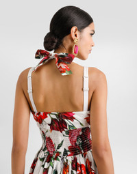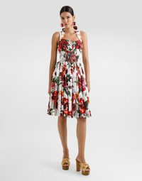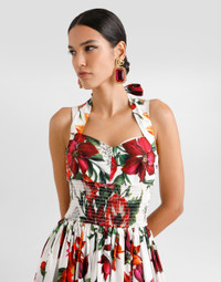 This poplin dress is perfect for special occasions, combining elegance and freshness thanks to its floral flowers print. Poplin dress with flowers print: • Multi-coloured • Elasticated Belt of 12 cm • Lined bodice • Shoulder straps tied at the back of the neck • Panelled skirt, gathered • Covered zip fastening at the back • The model is 175 cm tall and wears size 40 IT • Made in Italy The difference in the print placement that you may find on this product is a feature of Dolce&Gabbana’s “Handmade” pieces. A detail that makes every garment or accessory unique and exclusive. External Composition: 100% Cotton Internal Composition: 97% Cotton, 3% Elastane