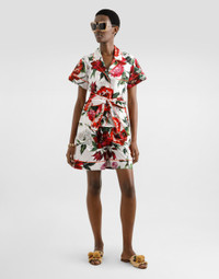 This poplin vanity shirt is a versatile and fashionable piece that is perfect for adding a touch of casual elegance to your wardrobe. The anemone and lily print gives a fresh, floral look, while the structured design ensures comfort and style. Poplin vanity shirt with flowers print: • Multi-coloured • Short sleeves with trim • Patch pocket on the chest • Piping inserted in seam • Waist belt • Side slits • The model is 175 cm tall and wears size 40 IT • Made in Italy The difference in the print placement that you may find on this product is a feature of Dolce&Gabbana’s “Handmade” pieces. A detail that makes every garment or accessory unique and exclusive. External Composition: 100% Cotton