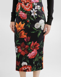 This straight satin skirt with flowers print is a perfect example of elegance and style. A versatile garment that adapts to multiple occasions, combining sophisticated design with unique craftsmanship. Satin skirt with flowers print: • Multi-coloured • Slit at the center back • Covered zipper closure • Lined skirt • The model is 175 cm tall and wears size 40 IT • Made in Italy The difference in the print placement that you may find on this product is a feature of Dolce&Gabbana’s “Handmade” pieces. A detail that makes every garment or accessory unique and exclusive. External Composition: 96% Viscose, 4% Elastane Internal Composition: 91% Silk, 9% Elastane
